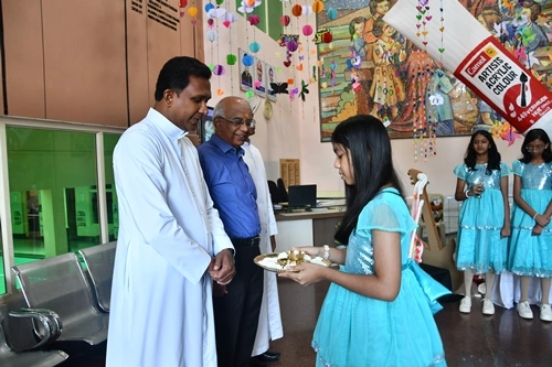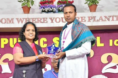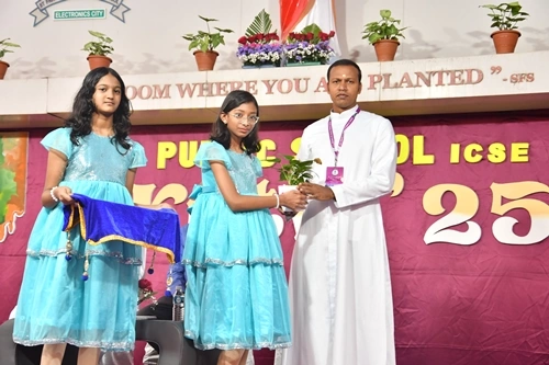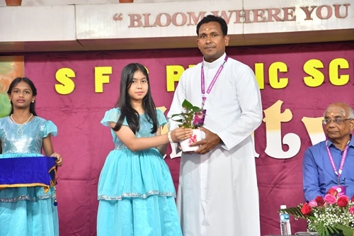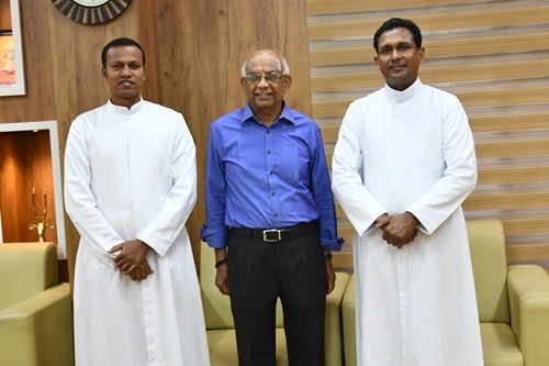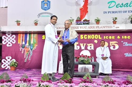 The scholars, Mr. Suresh E. Puthanveettil, the chief guest and Rev. Fr. D. Emmanuvel